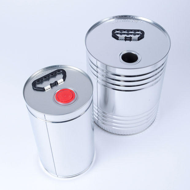 Als Hobbocks bezeichnen wir unsere Großgebinde mit zwei seitlichen Tragegriffen, die mit einem Deckel und einem Spannring sicher verschlossen werden. Diese äußerst vielseitigen Weißblechverpackungen mit Zulassungen für den Transport gefährlicher Güter nach RID/ADR und UN sind hervorragende Transport- und Lagergefäße und können wegen ihrer konischen Form im Leerzustand ineinander gestapelt werden.