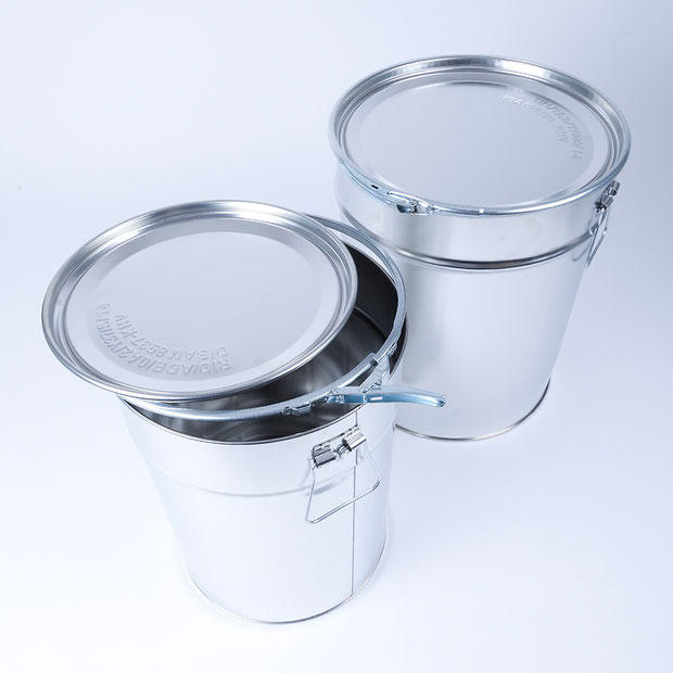 Patentdeckeleimer, oder auch Ringeimer genannt, sind bewährte und sichere Weißblechverpackungen für Farben, Lacke, Holzschutzmittel und für viele weitere chemisch-technische Produkte. Für lösemittelhaltige Füllgüter liefern wir diese Blecheimer ohne Innenlackierung.